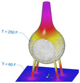 此模型根据应用于节点和单元的两个热温度载荷和一个对流载荷显示温度分布结果。