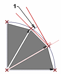 指定单元边起点处曲面边界曲线的切线和单元自由边角度之间的最大允许角度 (1)。