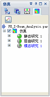 在仿真窗格中,单击要激活的研究的名称,如“静态研究 1”、“模态研究 1”或“屈曲研究 1”。