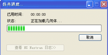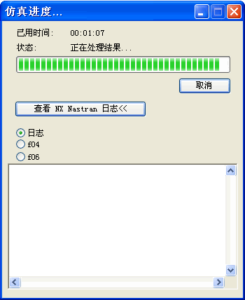 选择“查看 NX Nastran 日志”按钮可展开对话框以显示 NX Nastran 处理信息。