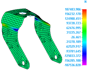 从数据选择组的结果类型列表中选择约束力后,就可以查看以下任意约束分量图中的仿真结果: