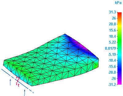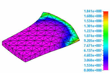 注释:不适用的结果显示为白色网格颜色。例如,在具有如下所示的 2D 曲面网格的钣金模型上,如果所分析的面垂直于应力方向 (X),则该方向上的法向应力 (X) 不适用。