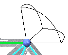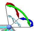 三重轴表示该联接处的可用自由度为 0。轴代表平动 DOF;圆弧代表旋转 DOF。