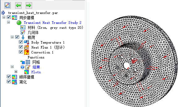此瞬态热研究的目标是识别刹车盘随时间的最高温度,并确认热应力不超过零件的最高工作温度。