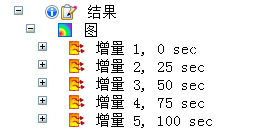 还可以使用仿真窗格显示这些图。展开结果→图→增量集以查看在指定时间间隔生成的每个温度和热通量图。当前显示的结果图在仿真窗格中以蓝色文本标识。如果某个图以黑色或灰色文本列出,可以双击它来进行显示。
