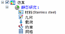 在仿真窗格中,可以看到,已为该模型创建线性静态研究。