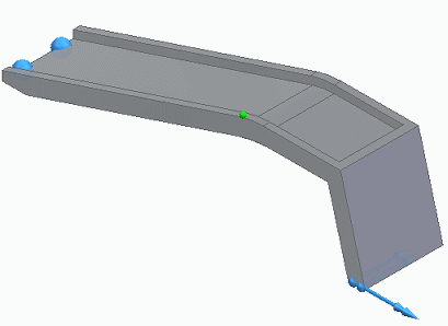 使用线性静态分析可模拟汽车坡道的应力和位移。当汽车行驶到汽车坡道上时,预计斜坡会略微沿地板移动。使用“沿曲面滑动”约束以复制沿曲面滑动条件。
