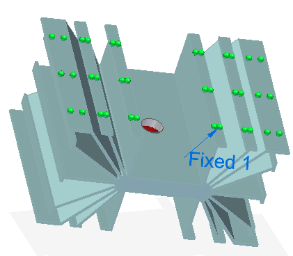 施加结构约束以在线性静态分析结果中生成应力值。例如,使用约束组→固定命令完全固定模型的底面。
