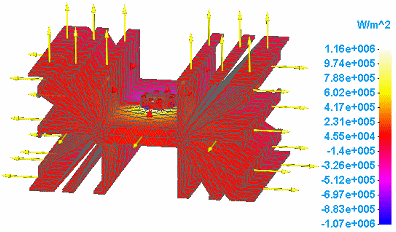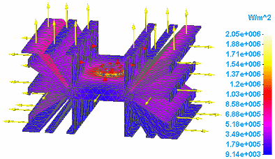 热通量图显示热研究中热能量交换的影响。它们测量热能通过一个单位面积的传递速率。热通量图还显示模型中各单元之间的温度梯度分布。