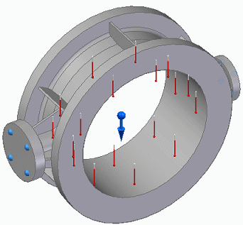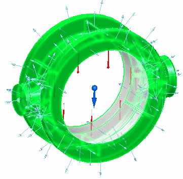 ,然后选择除内部圆柱以外的所有模型曲面。 提示:为此,您可以拖动零件周围的框,然后使用 Shift + 单击以取消选择内部圆柱。