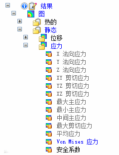 可看到热应力分析耦合研究生成两个结果类别:热和静态: