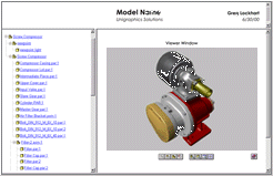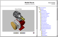 用户可以通过复制 WebPublish\default directory 和修改 .html 和/或 .css 文件来定义自己的定制网页模板。例如,通过修改 frame_layout.html 文件可使标题信息出现在装配树框架上方,同时查看器框架完全占据浏览器窗口的整个右半部分。