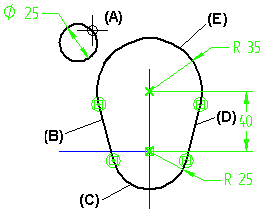 按住 SHIFT 键,然后单击系列 (B) 中通过 (E) 的每个元素。当释放 SHIFT 键时,相切关系被应用 (F)。
