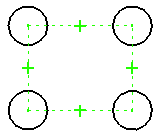 也可以使用此命令来水平地或竖直地对齐两个关键点。例如,可以利用轮廓圆中心点之间的水平和垂直关系使其保持对齐。