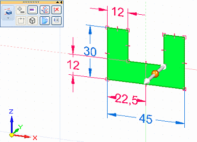 ,然后单击草图区域。 拉伸手柄显示在草图上。