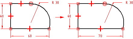 相等命令保持相似元素之间的大小相等性。在两条直线之间应用此关系时,这两条线的长度变为相等。在两个圆弧之间应用此关系时,它们的半径变为相等。