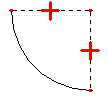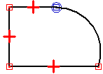 也可以使用连接命令将元素的端点与其他元素上的任意一点相连接,此点无需为端点或关键点。这叫做“元素上的点”连接,其符号类似于 X。例如,轮廓右侧上的顶部横线端点连接至竖线,但连接点不在端点处。
