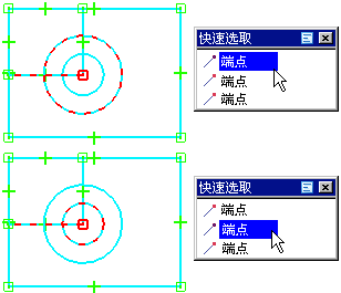 修改轮廓或草图时,它对于确定关系的父元素非常有用。选择几何关系时,父级高亮显示。例如,选择第一幅图中显示的水平关系时,左侧的竖线和圆高亮显示为父元素。