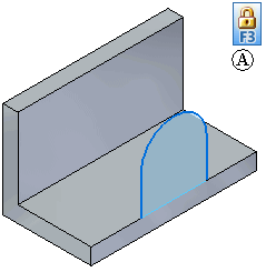 在使用支持手动草图平面锁定的命令的情况下,当光标处于平的面或参考平面上时,光标附近将显示一个锁定符号 (A)。可单击这一符号来手工锁定平面。