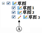 无论是以自动方式还是手工方式锁定草图平面,都会在与锁定草图相邻的路径查找器中显示锁定平面指示符 (A)。