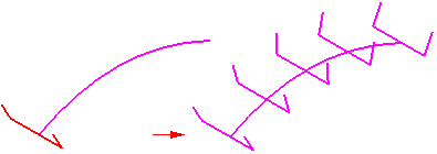 可将顺序草图和装配布局元素从一个参考平面复制或移动到另一个参考平面。这允许用户将大的草图分为一系列小的草图,使用户更容易完成正在归档的零件或装配。例如,可以使用垂直于一条曲线的参考平面以关联方式将一个草图复制为一系列草图。