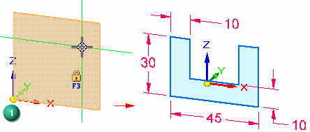当开始处理新零件时,通常将在基坐标系的三个主平面中的一个上绘制草图。例如,可在基本坐标系 (1) 的 XZ 主平面上绘制新零件的第一个草图。