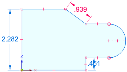 示例:此草图是同步零件草图。驱动尺寸的默认颜色为红色。非驱动尺寸(从动)为蓝色。