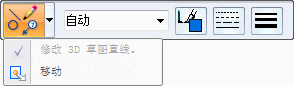从零件窗口中选择多个 3D 草图元素将启动修改命令,并显示修改命令条。移动命令位于修改列表内。