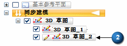 如果已经存在一个 3D 草图并且您选择了新建 3D 草图命令,将创建一个新的 3D 草图 (2) 并将其添加到 3D 草图收集器。此新的 3D 草图处于活动