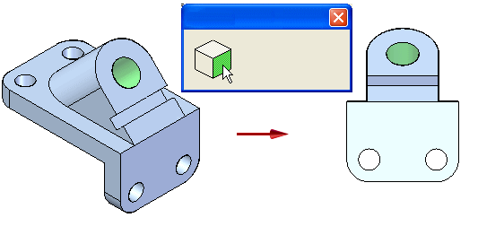 按照图示定位光标后,立方体更新并显示文本指示显示面选项。当您单击鼠标按键时,视图旋转以使显示的面和视图方向垂直。