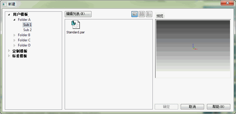 当您为您的公司创建定制模板时,可以将模板放在 青翼 CAD 2021\Template 文件夹或 青翼 CAD 选项对话框→文件位置选项卡的用户模板字段定义的其他位置。例如,定义路径后,所有子文件夹将出现在新建对话框的用户模板列表下。