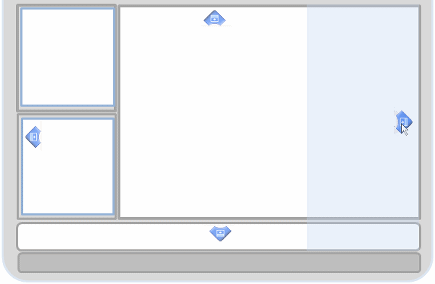 示例:使用指向右的方向箭头时,着色区域会显示窗口的定位方式。