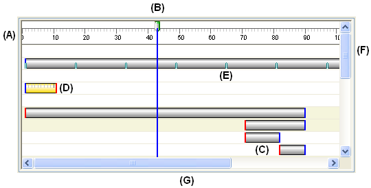 (G) 水平滚动条。可以向左或向右滚动时间线。