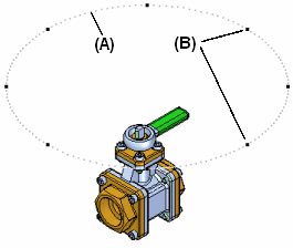 显示照相机路径按钮在图形窗口中显示照相机路径曲线 (A)。曲线上的关键点 (B) 代表关键帧在照相机路径上的位置。关键帧将在后面详细讲述。照相机路径曲线可以是开口的或封闭的,取决于照相机路径是如何定义的。使用绕当前视图飞行选项创建照相机路径时,曲线是封闭的。使用使用命名视图构建创建照相机路径时,曲线通常是开口的。