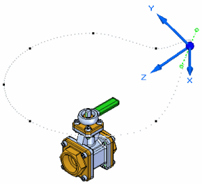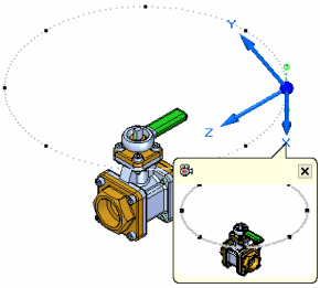 通过首先使用旋转命令旋转装配视图,您还可以创建定制命名视图。然后,您可以使用命名视图命令用一个名称将视图方向保存下来。之后,可以在照相机路径向导的第 2 页向关键帧添加命名视图,以定义新的照相机路径的方向。