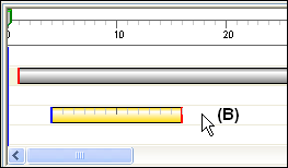 (A) 帧刻度。可使用切换刻度按钮更改帧和秒之间的显示比例。
