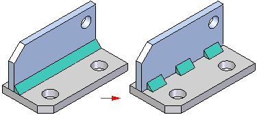 对现有焊缝进行除料以创建一组间断焊缝。可以选择现有的角焊或坡口焊特征,或者选择在其上添加过焊接标注的拉伸特征。