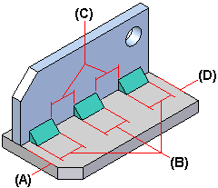 根据所设置的选项,可以指定起始偏置长度 (A)、焊缝长度 (B)、间隙长度 (C) 和终止偏置长度 (D)。