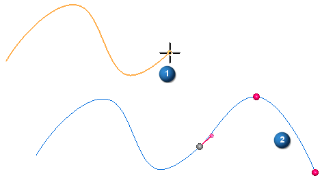 可以使用现有路径 (1) 的端点创建与原始路径相切并连续的新路径 (2)。