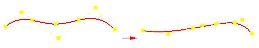 如果删除路径的起点或终点,路径被截短为路径上的下一个控件,而下一个点的切率保持不变。