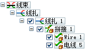 将创建包含拼接的单个连续线扎,该拼接含两条电线。