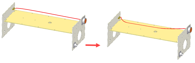 如果需要沿曲面(如机器体上的机械零件、框架、圆角或不规则曲面)对线束实体布线,则此命令非常有用。此命令还可为您提供线束实体所需的精确长度,从而优化成本。