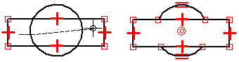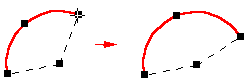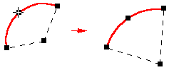 可以通过拖动其中一个手柄来更改所选元素的形状。第一幅图显示拖动端点手柄的效果。第二幅图显示了拖动中点手柄的效果。