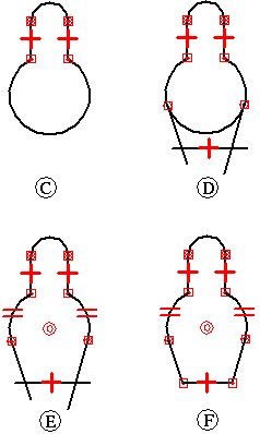 在绘图时, 会需要修改元素来创立有效轮廓或按需绘制图纸 (C-F)。要修改元素,可使用诸如修剪和延伸之类的修改命令。仍会保持这些关系并应用其他关系。