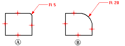 例如,可以先规定一个弧的半径尺寸维持其大小 (A),然后再编辑半径尺寸的值改变其大小 (B)。