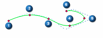 可按点绘制光滑的 B 样条曲线。通过单击和拖动可定义手绘曲线,也可以通过单击鼠标创建编辑点来定义曲线。如果单击编辑点,则必须至少定义三个点来创建曲线。