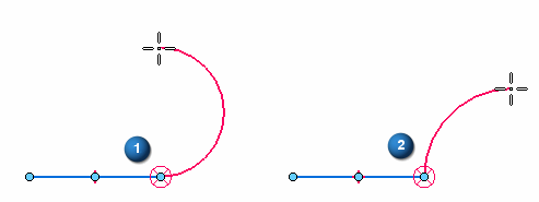 默认情况下,“直线”命令从直线模式开始。如果要从绘制圆弧开始,请按键盘上的 A 键,或单击命令条上的“圆弧”按钮。使用 L 和 A 键或命令条上的“直线”和“圆弧”按钮绘图时,可以从直线模式切换到圆弧模式。