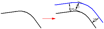 可绘制一个 2D 元素或一组连续的相连 2D 元素的偏置副本。此命令复制元素,而同时保留诸如线条的角度、弧和圆的中心点等特征。
