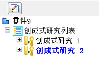 在创成式设计窗格中,活动的研究以蓝色文本显示。要为每个研究指派定制名称,可使用其快捷菜单上的重命名命令。相同名称指派给创成式研究结果。