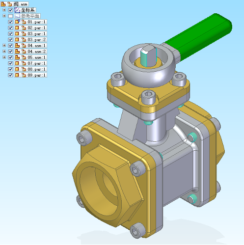 2 使用“传递”功能,将顶层装配下的07和08部件,组合成一个新的“手柄”子装配
